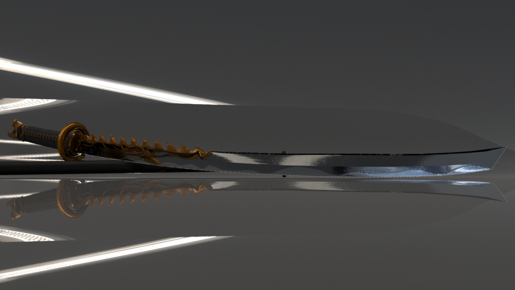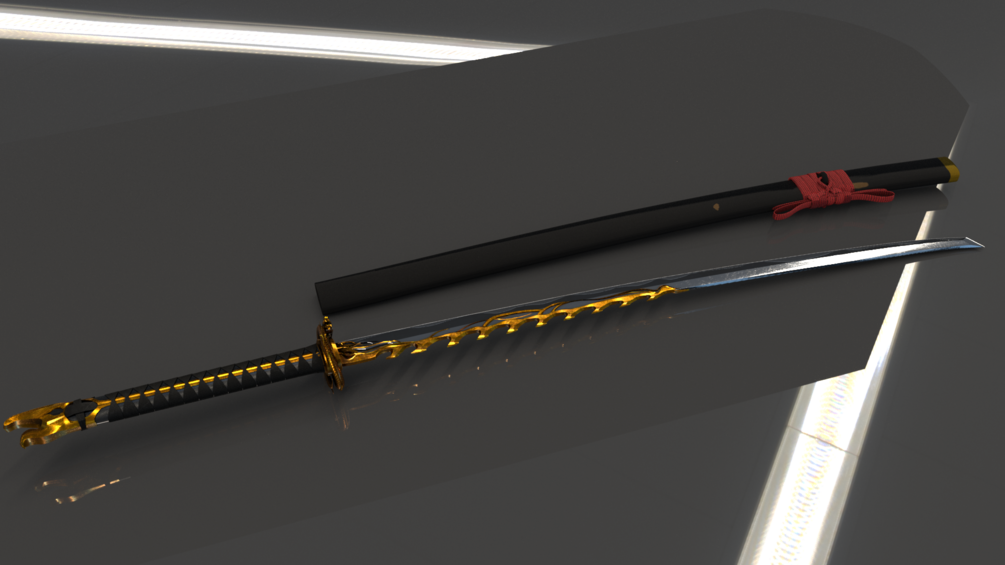 One FBX model of my Dragon Katana, an entire set of PBR textures for the entire model, Three render images of the model, a photoshop document of the textures.